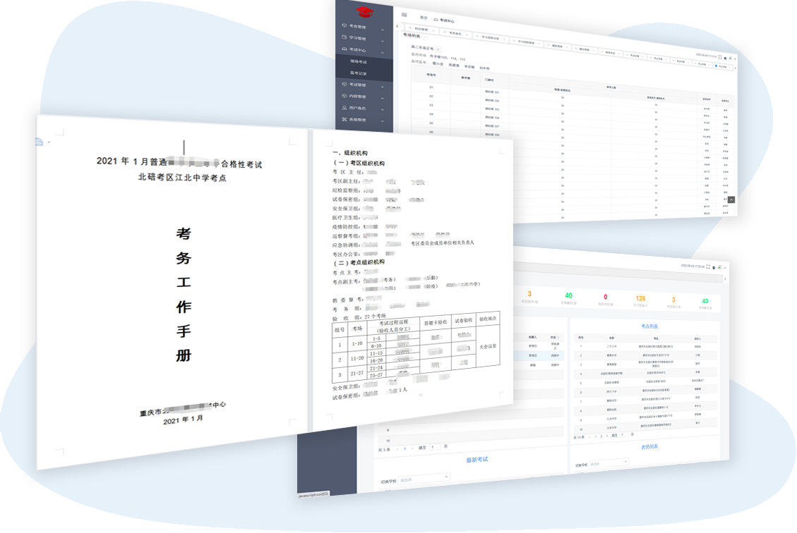 • 快捷的考場生成和安排功能,可幫助考式中心、考點(diǎn)快速安排考場和監(jiān)考老師。